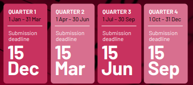 These are the deadlines by which an athlete must have submitted their whereabouts filings for the following three months.